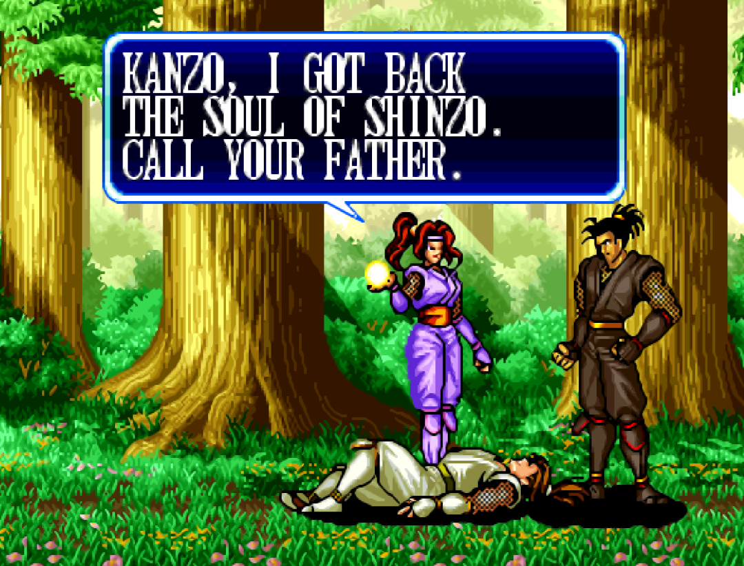 在《侍魂RPG》中霸王丸回到家乡之后再次遇到了静,并表示了自己追求武学最高境界的决心。