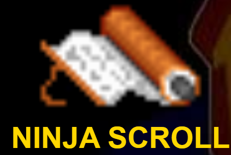 日版天书的威力可是非常强大的,一般的BOSS放两次就打死了。官方名字叫:NINJA SCROLL(忍者卷轴)。有意思的是《NINJA SCROLL》是动漫《兽兵卫忍风帖》英文名字。
