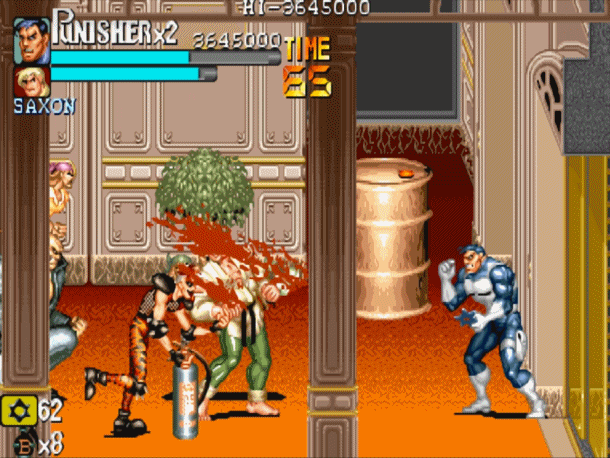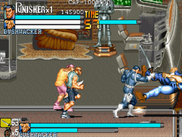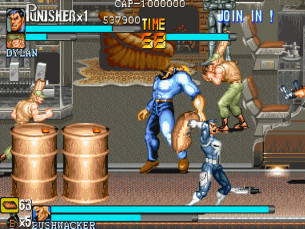 我们知道,无论什么街机游戏,火不火爆主要看新手玩家多不多。其他游戏的第一关都是比较简单的,《惩罚者》的难度相对比较大,出场就是连续几场大混战,这谁受得了啊!