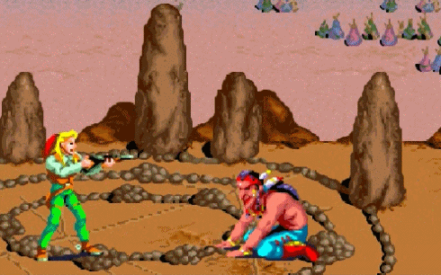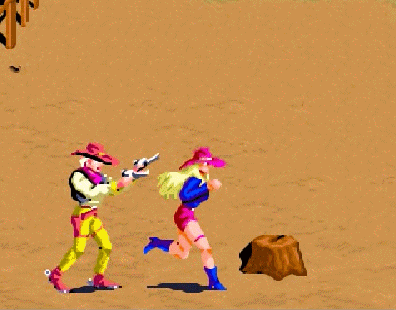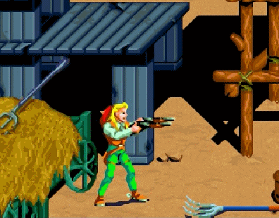 游戏中出现的女性大部分都是背景人物,而在反派阵营中则有那么一位可爱的牛仔女。她经常趁玩家不注意扔出炸弹,要是玩家将炸弹扔回去的话,就会吓得她花容失色。