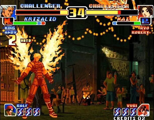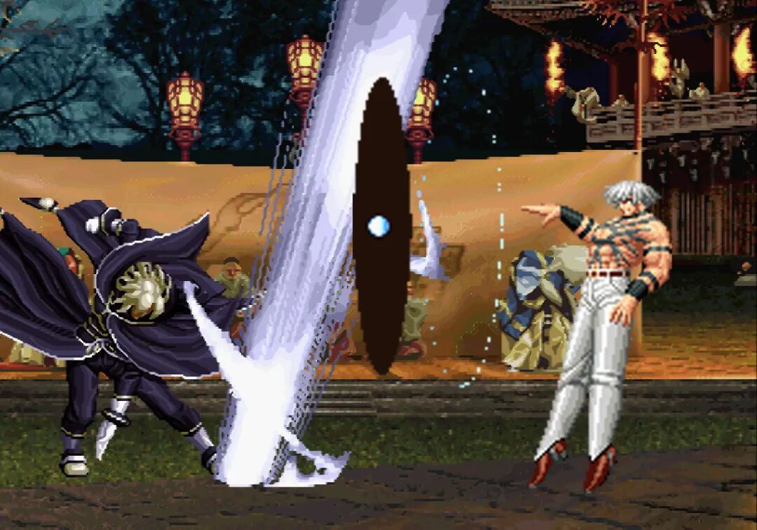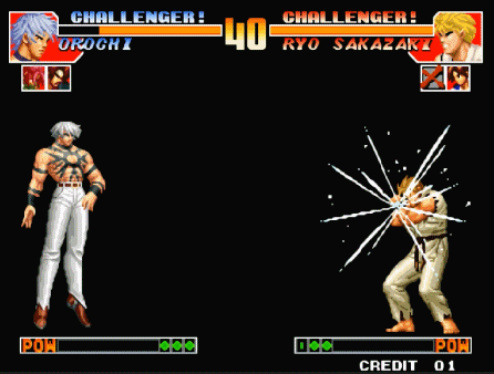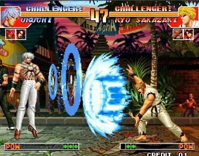前面几部作品都是在为他的登场做铺垫,加上暴走八神庵、疯狂莉安娜,以及觉醒的大蛇队镇场面,大蛇一出场给人一种毁天灭地的气场。