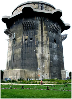 目前在柏林还能看到残存的防空炮塔,主要是身子太壮实,战后想拆除都困难,像是动物园防空塔在1947年动用了将近35吨炸药才能办成。