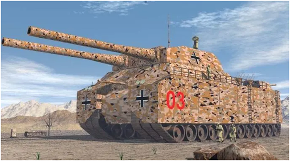 ROMMEL之前会有一辆巨型坦克BOSS,这就是装备有两门280MM主炮和一门128MM反坦克炮的P-1000,《狙击精英3》峡谷基地里还能看到尚在建造中的P-1000,但实际上这也是个图纸货。