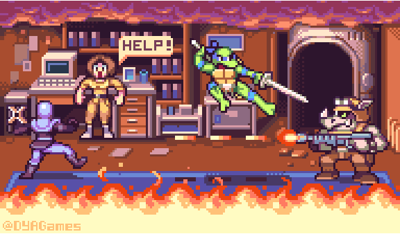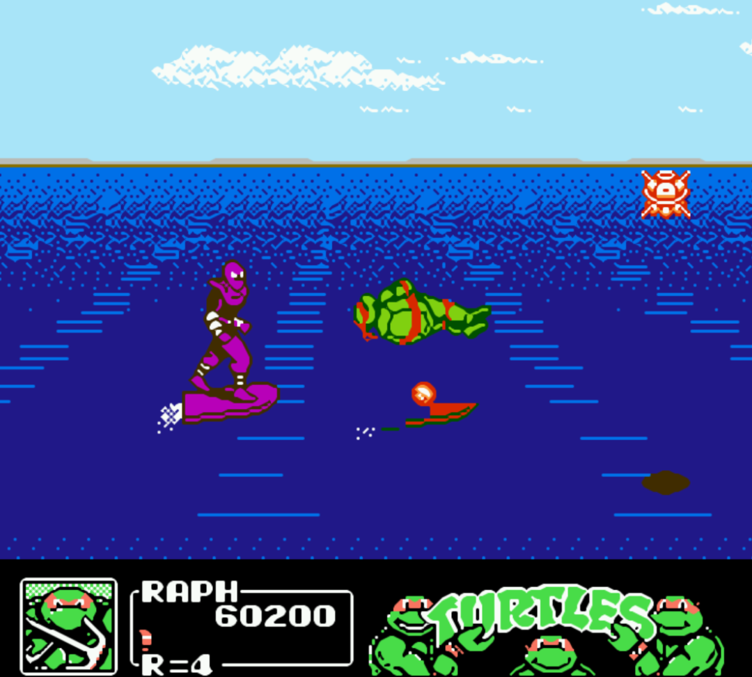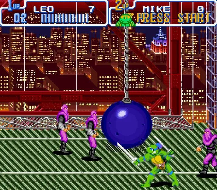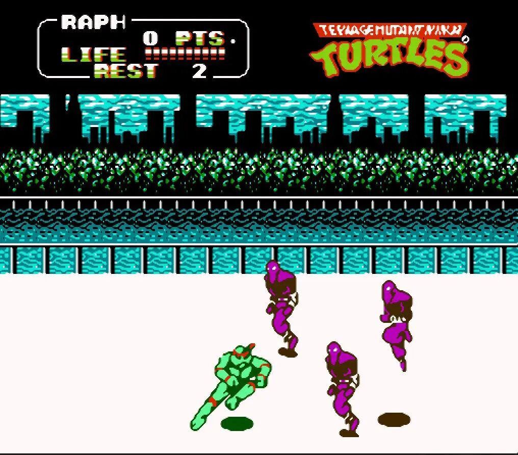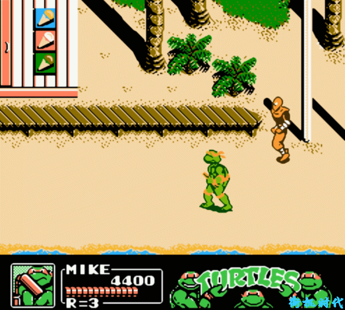 记得当年第一次见到这个画面的时候还有点不敢相信,《忍者神龟》的游戏已经做到这种程度了!