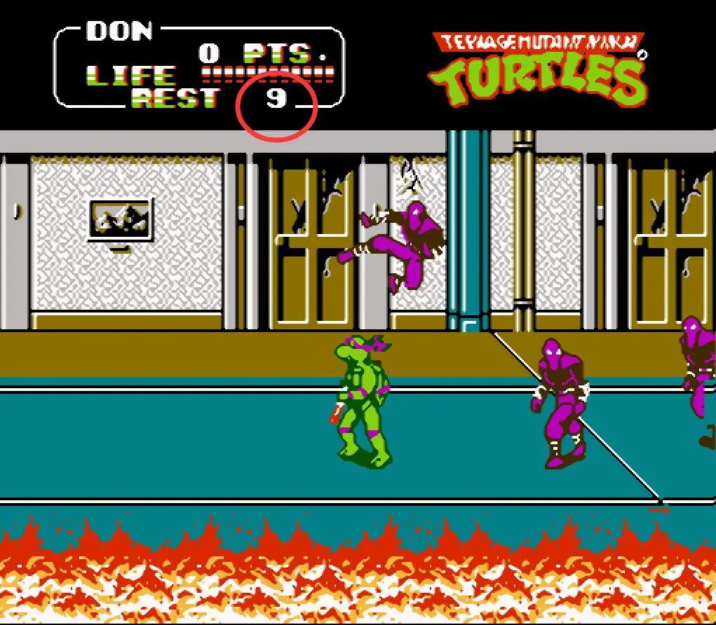 多少玩家整个童年都没有见过最终BOSS呢?小时候经常和小伙伴抢第一个拿刀的忍者龟,就是因为费血技能最厉害,持续时间长。其他人最后几关的命不够死,无法通关。