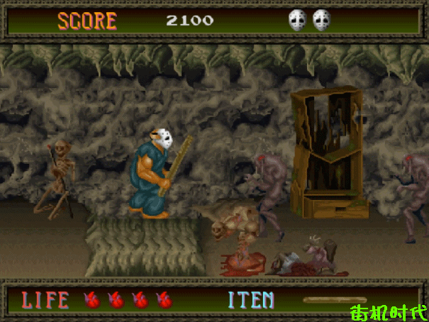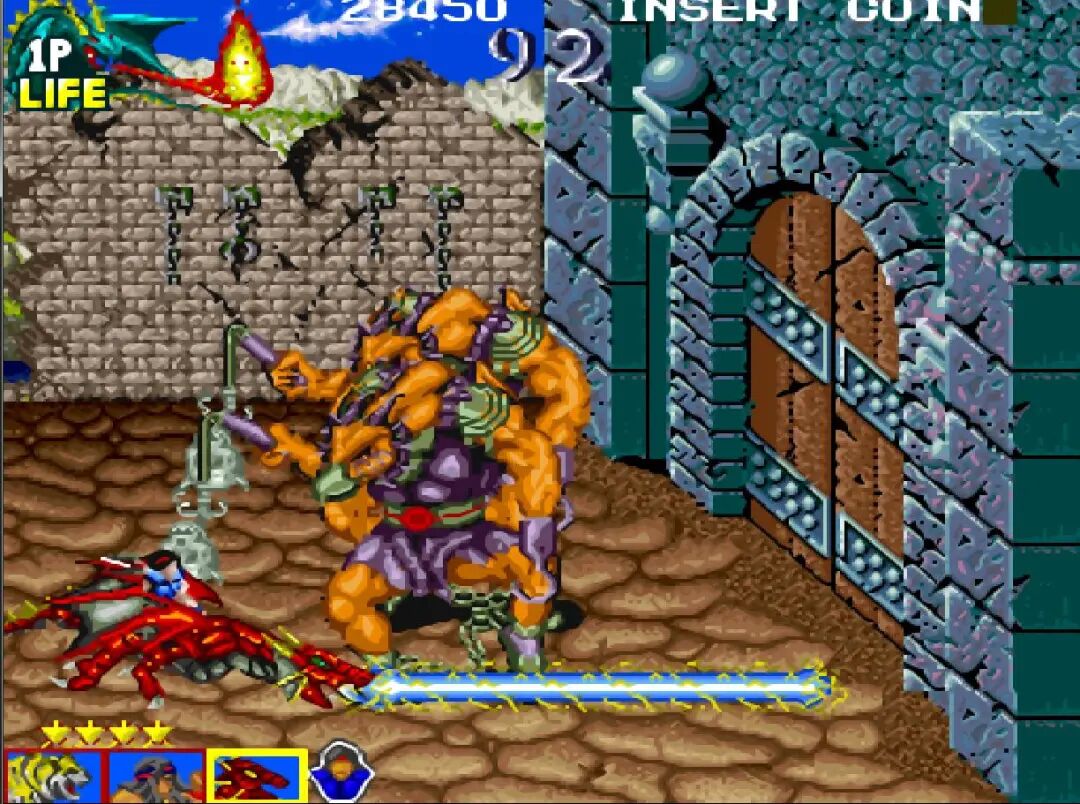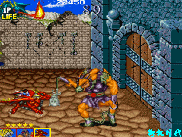 巨人跳到怪物头上期间是无敌的,新手玩家想要过关的话就需要使用这一招。跳起来抓人的玩法和《双截龙3》中的操作几乎是一样的。