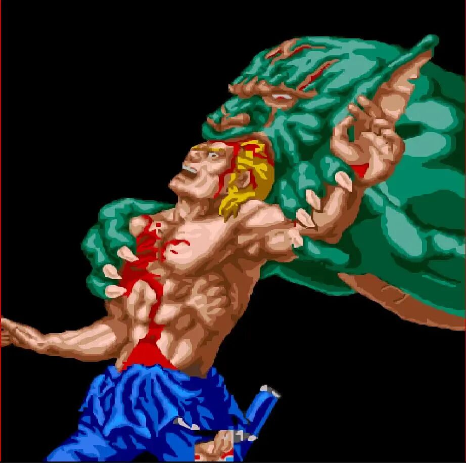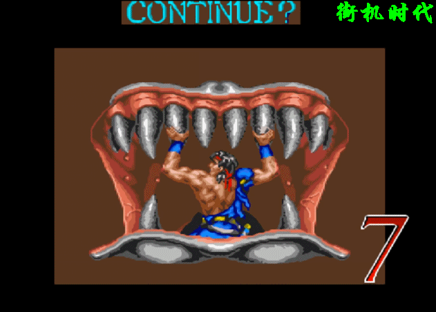 一张血盆大口,直接将受伤的男主一口吞了下去。要是你不续币的话就真的吃了。那时候的玩家们都没什么钱,不大可能会为了看通关画面,或者是受不了这个画面而投币的。