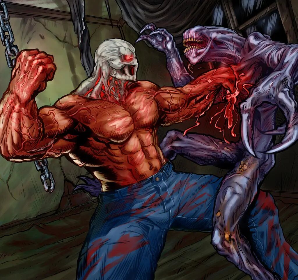 巨人的能力比较强大,可以直接个怪物硬拼,还能跳到怪物头上进行攻击。成功之后,怪物的脑袋会裂开喷出大量的鲜血,但是还没死透,会继续和玩家战斗。