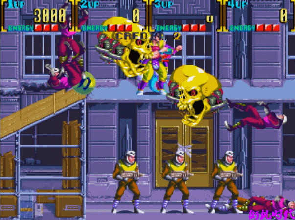 太阳神同样可以吐出幽灵,到处追杀玩家。但在这个版本中却很好躲避,因为游戏中首次加入了“下+跳”的人性化设计。