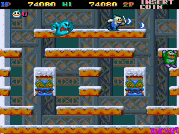 《雪人兄弟》的时间可以说是非常紧迫的,玩家每次都必须以最快的速度将所有杂兵清理掉才行。