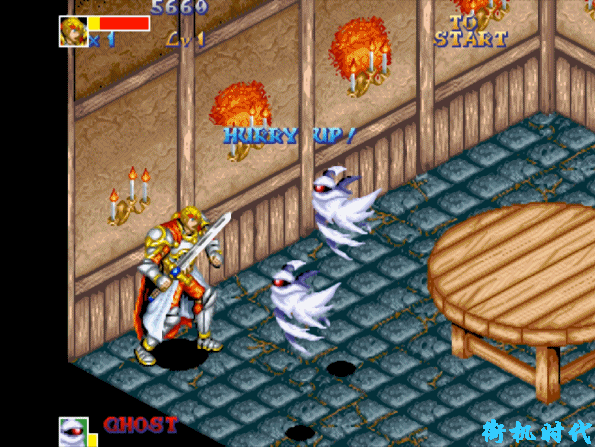 稍微耽搁那么一下下,就会出现一只幽灵。这两款游戏中的幽灵都是可以对付的。《暗黑封印》只要你变身,通过圣光就可以驱散邪魔;而《光明使者》中的幽灵是可以砍杀的。