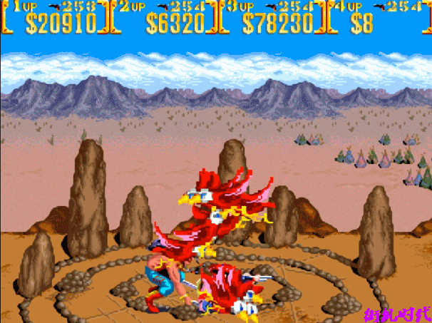 《枪王》算是比较另类的街机游戏了,玩法包含了:射击、格斗、爬层,将这几种元素完美融合,堪称是游戏厅时代最具创新的游戏。