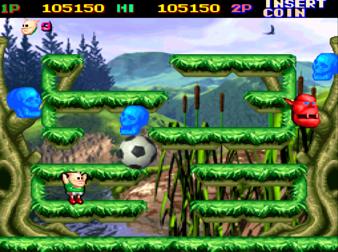 按说《雪人兄弟》是爬层类游戏的鼻祖,但不知道为什么3代却要去抄袭《战斗原始人2》。