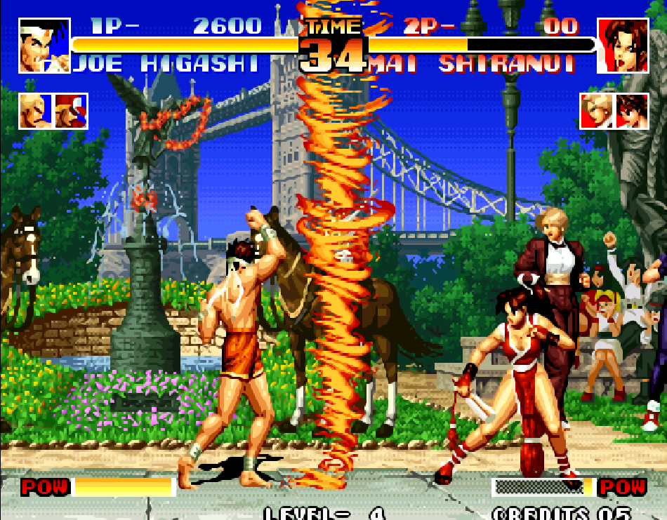 有意思的是,SNK当年却在他们身上倾注了不少的心血。将他们在《饿狼传说》时期的超必杀技全都移植了过来,并且在这个技术上进行的强化。