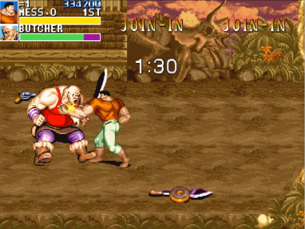 在CAPCOM清版过关游戏中教科书级别的“2关BOSS”,他的双刀威力远在“光头屠夫”之上,攻击判定优先于玩家,硬拼绝对没有好下场。