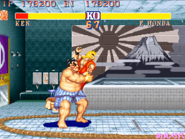另外,本田的投技,小编尝试了一下《街头霸王2》原版的rom,以及游戏厅盗版的rom之后发现: