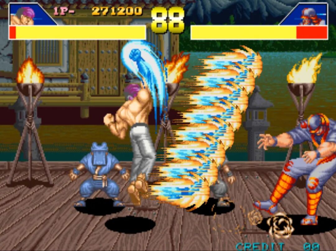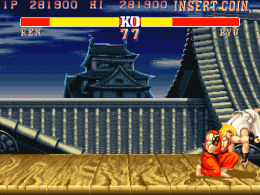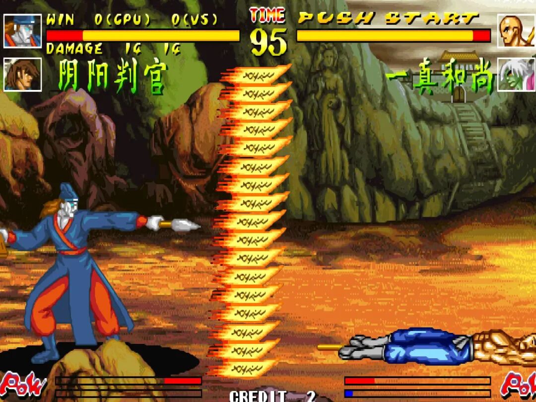 另一边,还有一个比较恶性的BUG。那就是在释放一堆波动拳之后去抓对手,要是刚好他被波动打中的话,瞬间就会重启机器,这枚游戏币算是交代了。