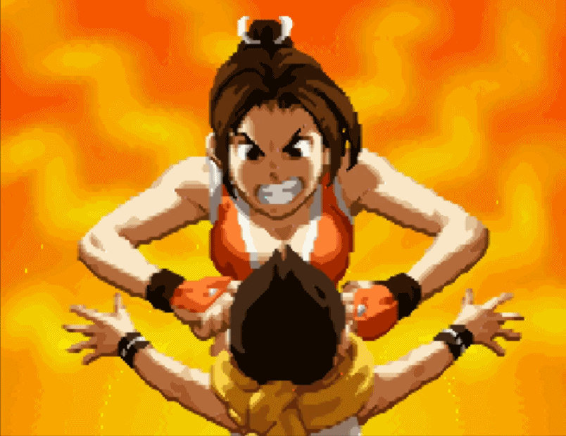 不知火舞通关之后,将对安迪的怒火,全都发泄在北斗丸身上。我们将北斗丸移开之后,发现不知火舞的贴图是不完整的,下半身并没有到下面底部,北斗丸的身影刚好够遮住。
