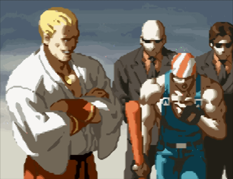 这里我们可以看到报纸遮挡的范围,恰到好处,SNK似乎并没有打算将两个人物完全画完。