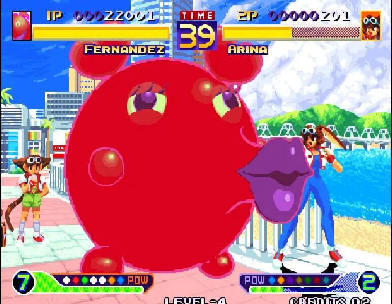 SNK的双叶莹和色,都拥有一招比较恐怖的必杀技,在抓住对手之后,强行压在地上吸取精气。色在使用了之后不仅仅可以给对手产生伤害,而且还会顺便回血。