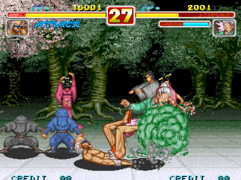 另一个比较喜欢打屁的角色,则是来自《豪血寺一族》中的孤空院干滋。他在释放必杀扫尾的时候会使用一次,但是在放过屁之后就会恢复老态龙钟的样子。