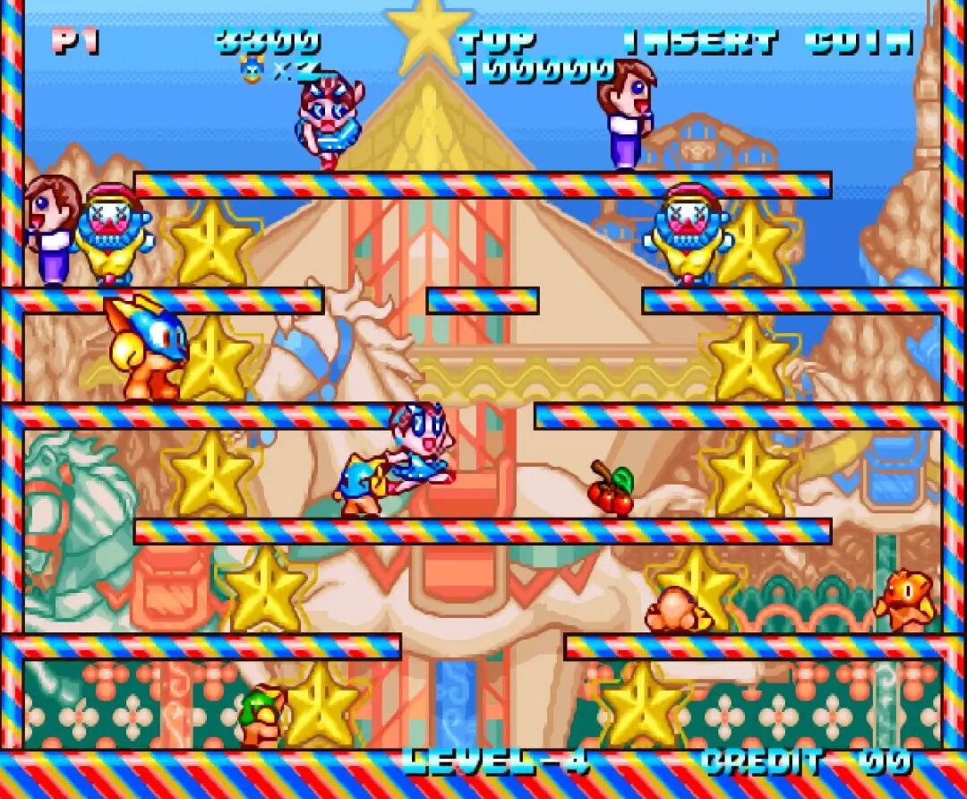 SNK比较少见的爬层游戏,游戏类似《雪人兄弟》,但是玩法完全是不同的。