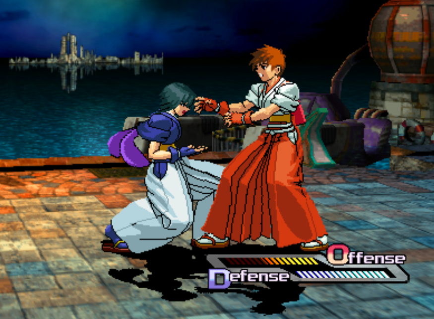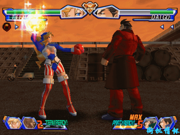 另一边,水无月响子和岛津英雄的合体必杀技非常有意思。在命中对手之后可以打出一定的伤害,但是不高。这一招的主要目的在于回血。通过水无月响子的精确手法,让人在瞬间感到一阵愉悦。