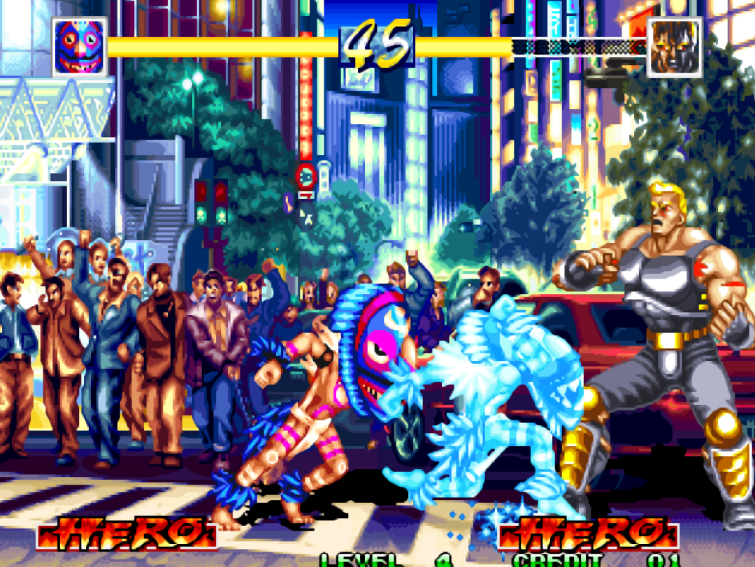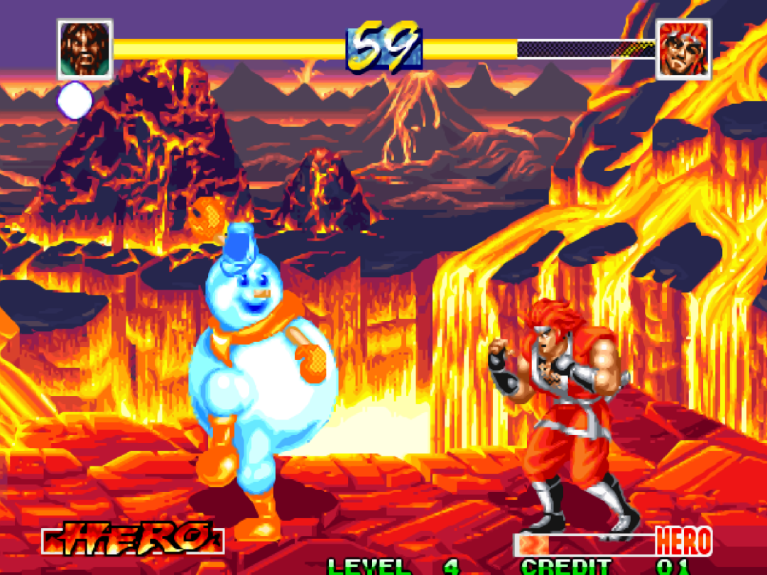 很难想象,《世界英雄》居然是1992年发行的格斗游戏,仅仅比《街头霸王2》晚了一年。
