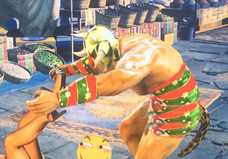 在《街头霸王V铁拳》时期毒药的超必杀技有两种,一种是将对手打翻在地,然后用鞭子抽,另一种就是踢裆。因为只有男人才懂男人最脆弱的地方。