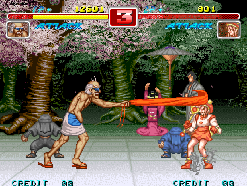 孤空院干滋一直都是为老不尊的代表人物,超必杀技的收尾他会释放一个屁;而使用“一尺布打”的时候,居然是从下面抽出来的,简直太恶心了。