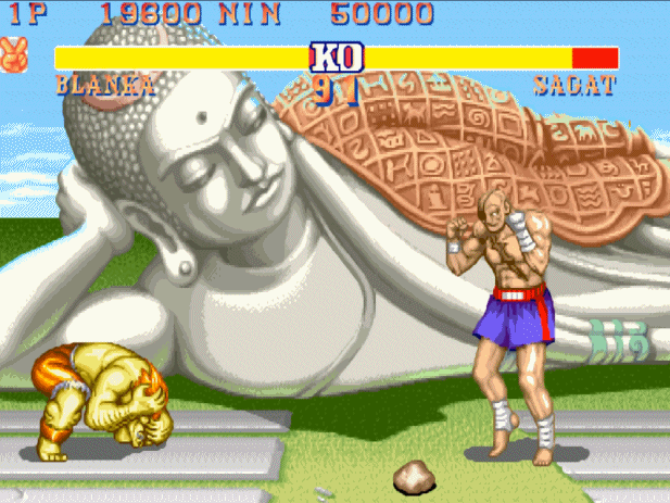 有意思的是,升龙拳打布兰卡翻滚的效果,却稍微比沙加特要高那么一点点。