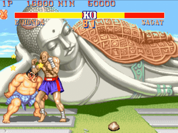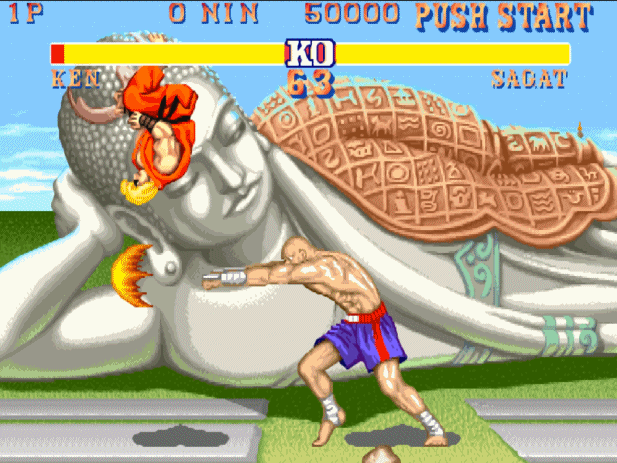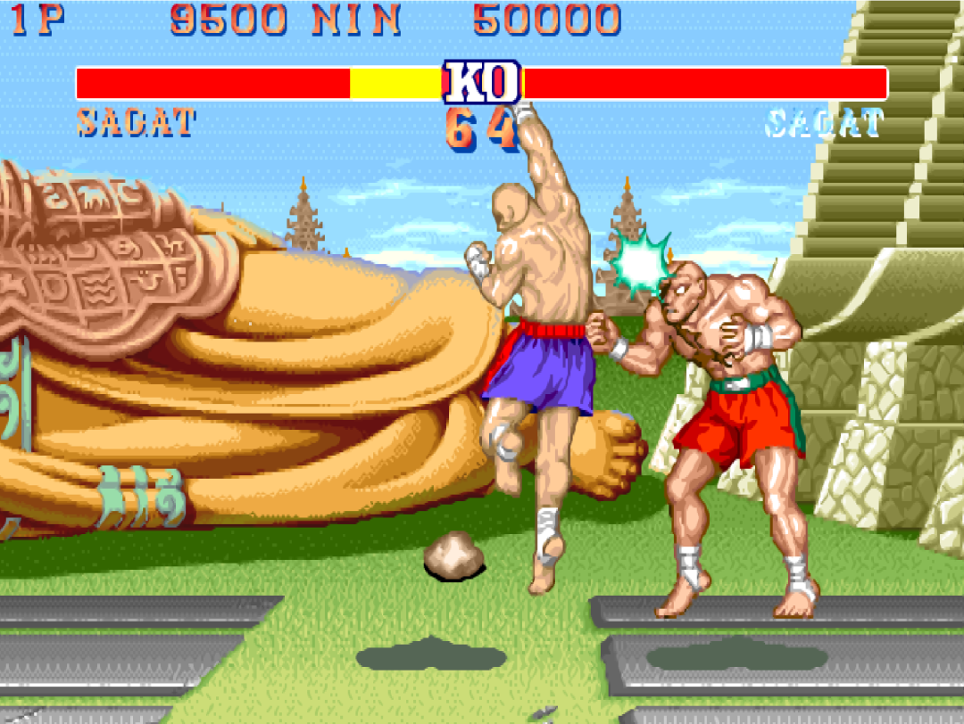 沙加特的升龙拳和冲膝击中之后也就三分之一的血量。已经完全没有BOSS光环了。