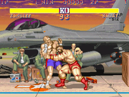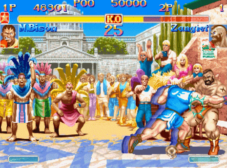 因此在《街头霸王2十二人版》中,伤害最高的一招,则是来自桑吉尔夫的“螺旋打桩机”