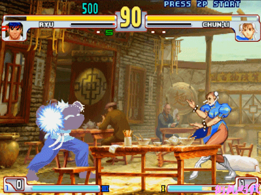 《街头霸王3.3》中隆蓄满“电刃波动拳”之后可以将对手直接打晕。
