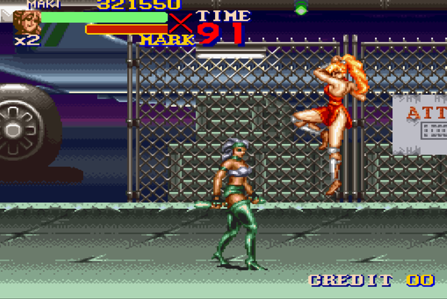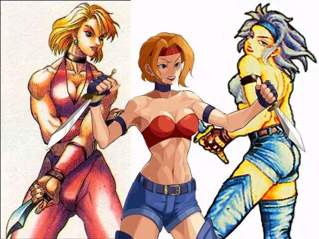 《快打旋风2》再次上场了两位姐妹花,他们分别是玛丽和伊莉莎。他们拥有不输于毒药和罗可茜的美貌,而且又是在SFC平台发行的,因此她们的性别比较稳定,就是BAD GIRL。