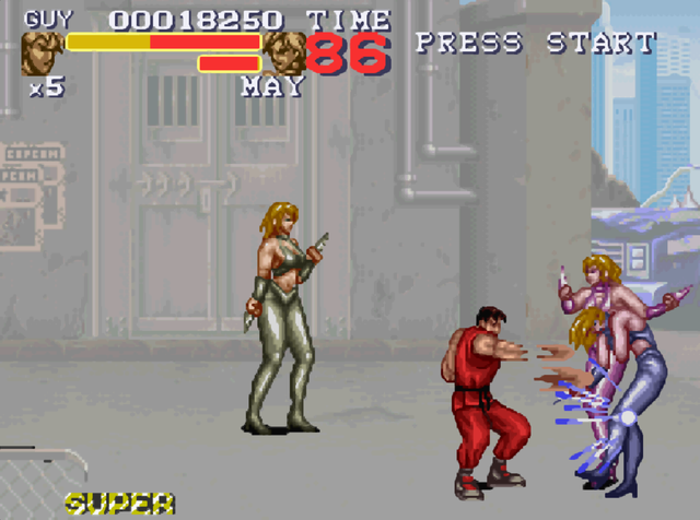然而,事情并没有结束。在1991年《快打旋风》被移植到SFC和GBA平台,在国际版中出现了两位男性角色,代替了毒药和罗可茜的位置。