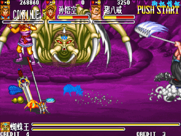 蜘蛛王这里,几乎所有的法宝都是很好用的,就连最不起眼的土炸弹和飞刀都能在这里使用,反正BOSS不会移动,就在水池里面让你打。