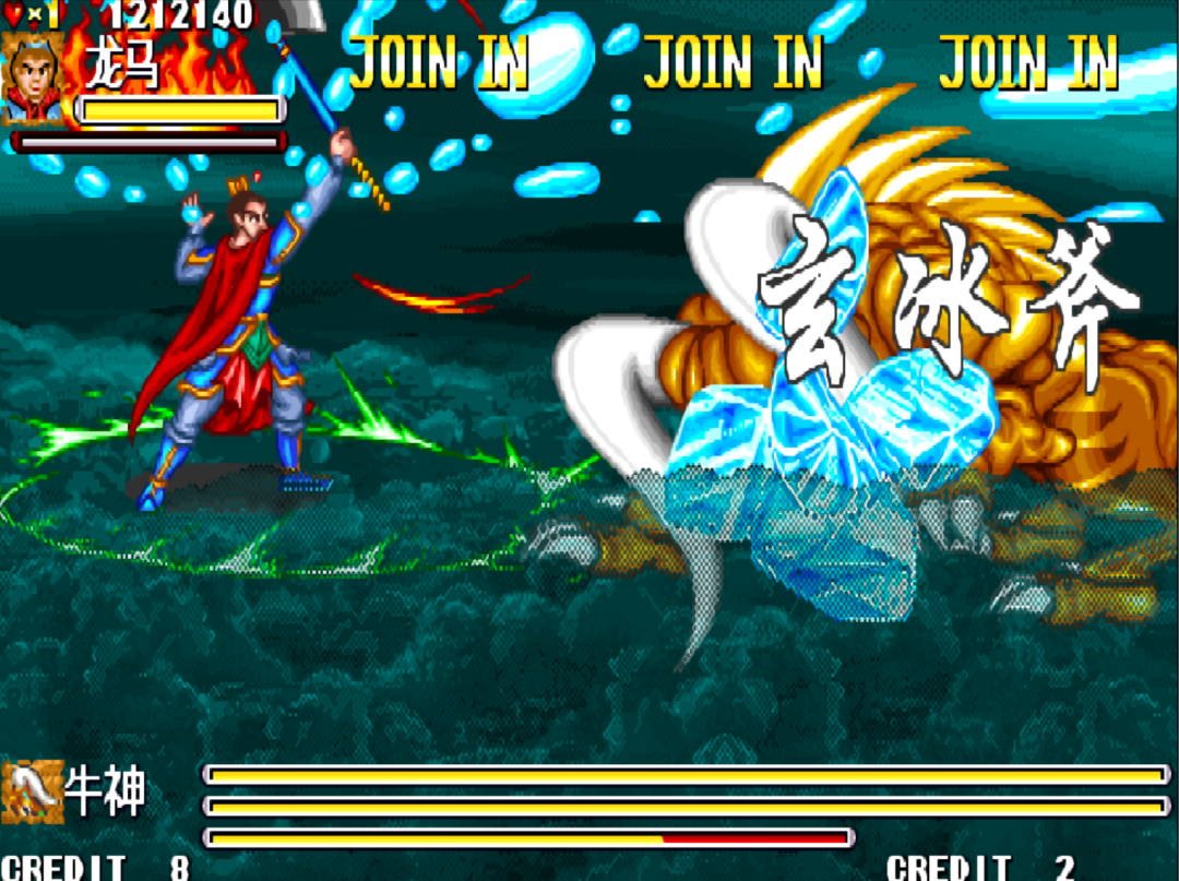 从牛魔王这里开始,几位BOSS都是火属性,使用玄冰斧可以完全克制。任何人使用的效果都是很好的,不过要是专属人物使用效果更佳。