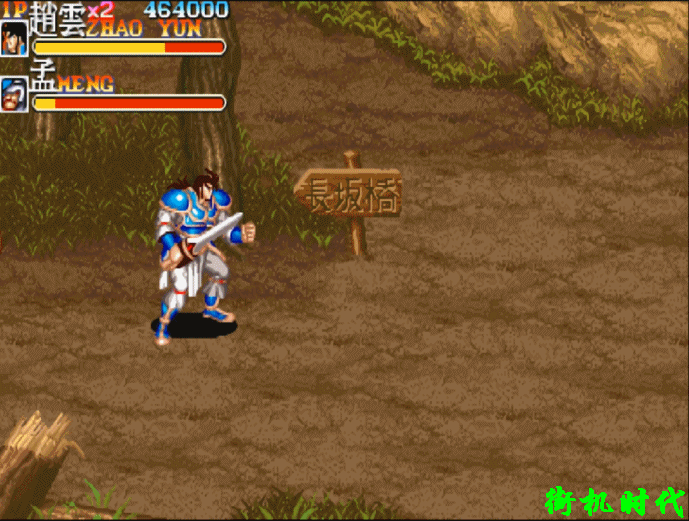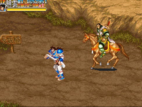 在场景中,长板桥这个路标牌子刚刚露出来一半,夏侯恩就会出现。这时候就要考验玩家的走位了。