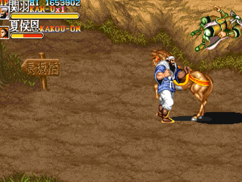 而夏侯恩可是不会下马等你的。因此需要将他打下马,然后卡在上面的角落中。等清兵完成之后再抓下来。