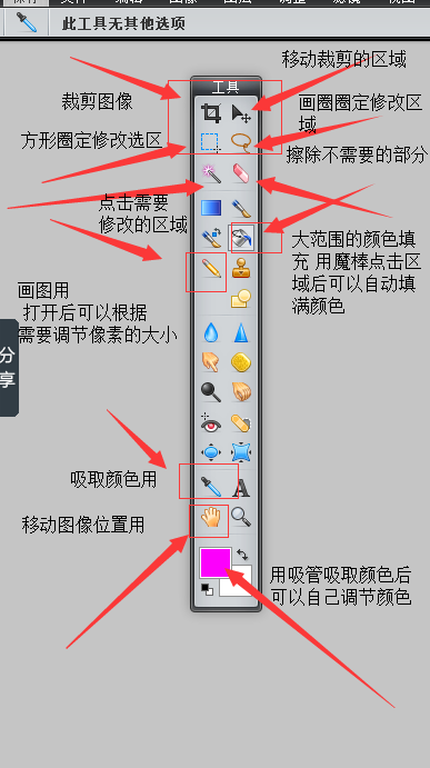 选用软件是photoshop,使用的功能也就是:橡皮擦,铅笔,像素,魔棒等等