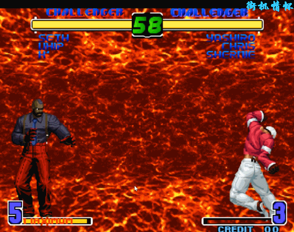就是因为《拳皇十周年》改版游戏在游戏厅是非常火爆的,而七枷社的火山拳(岩浆拳)又是这个版本中最强的技能,操作极为简单,下ABC即可释放,可以在打康的时候直接秒杀对手。