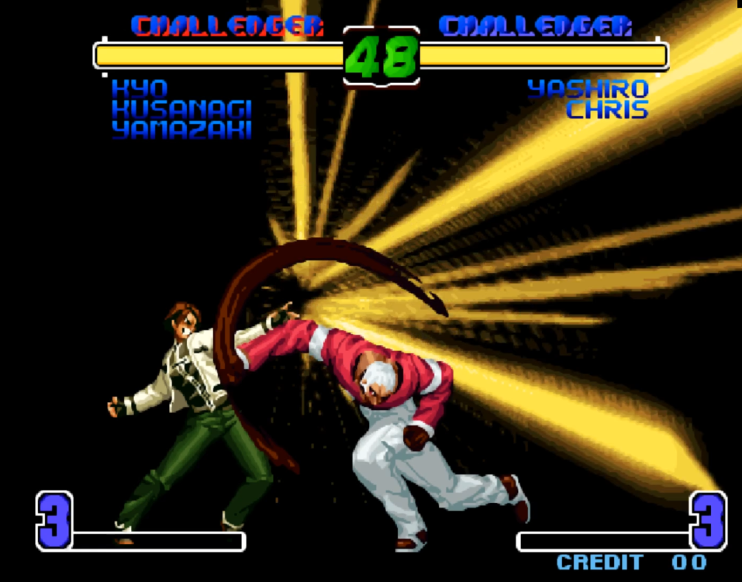 《拳皇十周年》在游戏厅的火爆程度并不比97差,当然了这种热度仅仅属于这个阶段。毕竟没有投入过心思去练的游戏,都仅仅是一时之快,甚至多年后都不好意思和朋友提起。