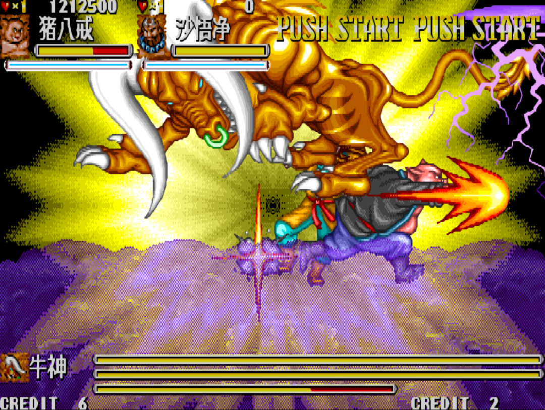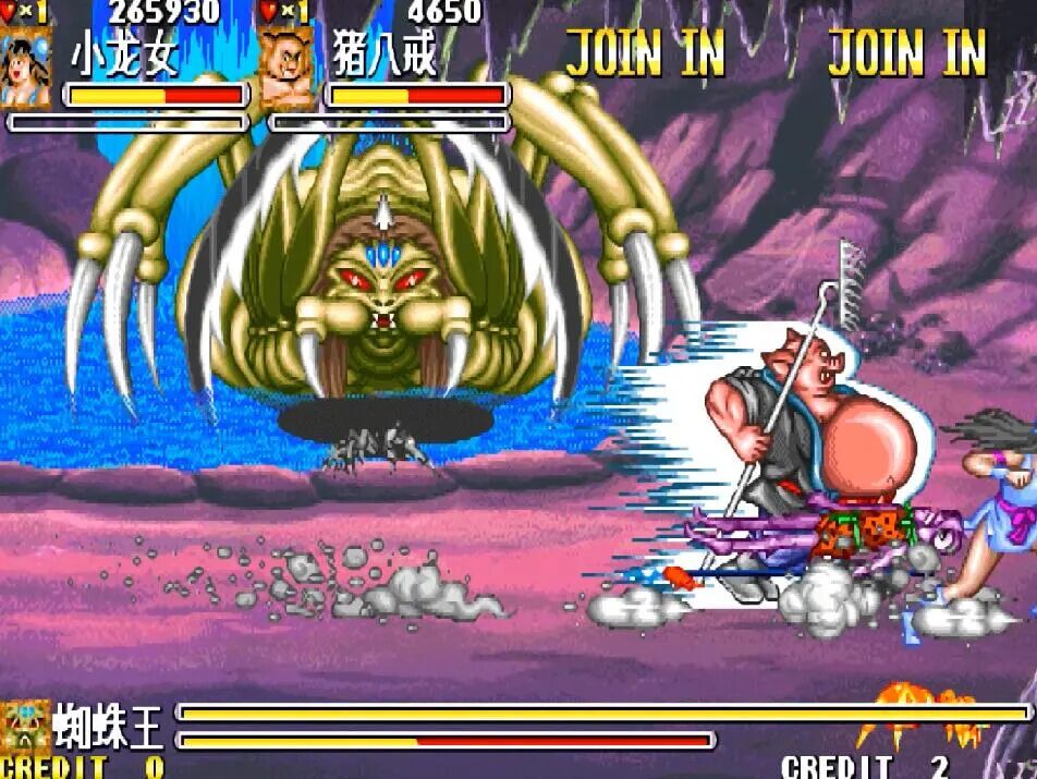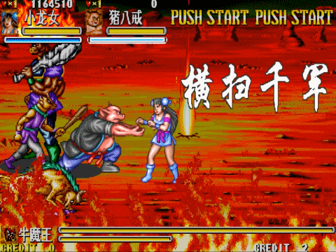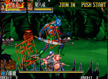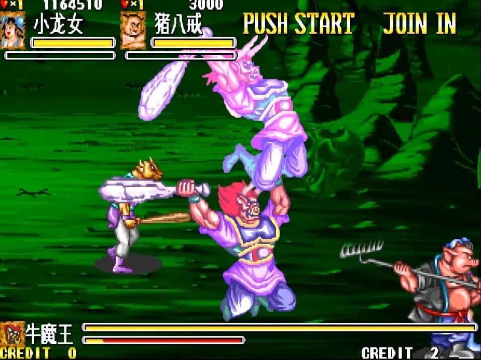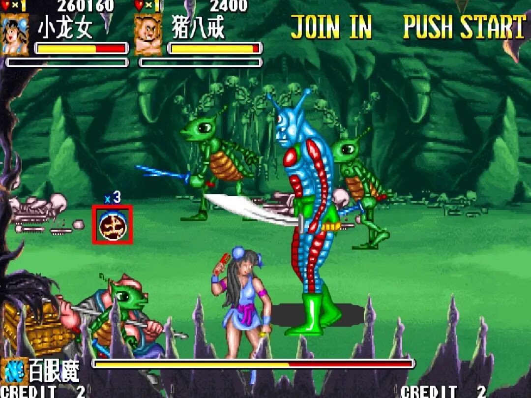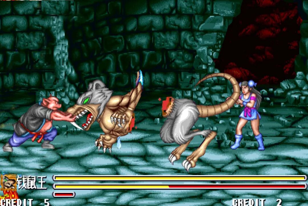游戏厅那会儿,似乎只有钱鼠王这一关是用龙马和猪八戒的狮子吼完成的。这一关的难度相对比较大,敌兵太多了。