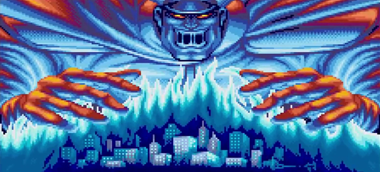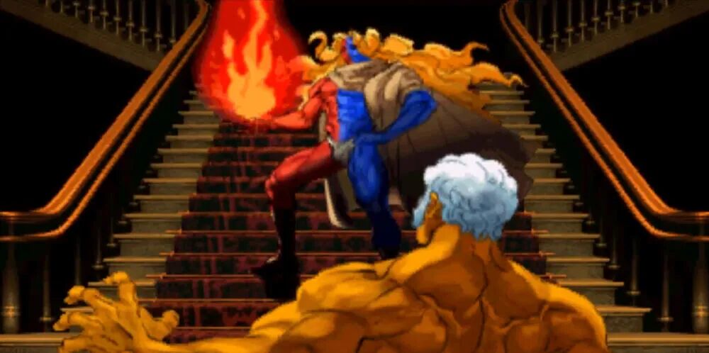 《卡普空对漫画英雄》里选天启,是主角隆和镭射眼的结局;