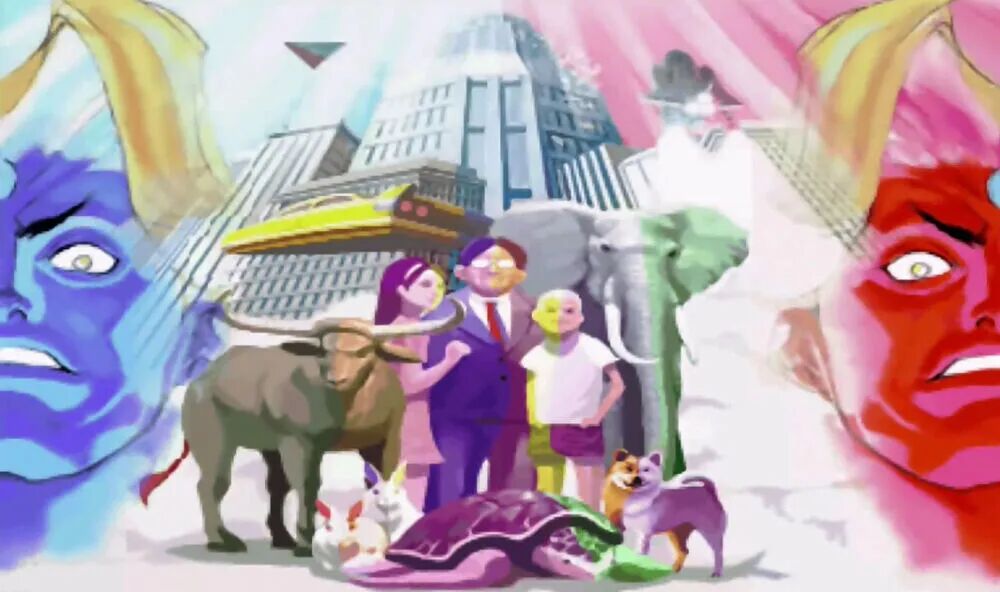 在他的结局中,所有格斗家们都加入了“光照派”,而地球上的人类(包括动物)全都变成了一分为二的颜色。预示着新的时代降临了。
