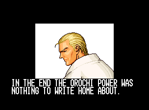 选用暴风高尼茨、薇思和麦卓可以组成大蛇队。(街机版无法选用,但是作弊选用的话效果和家用机是一样的,有专属的剧情)