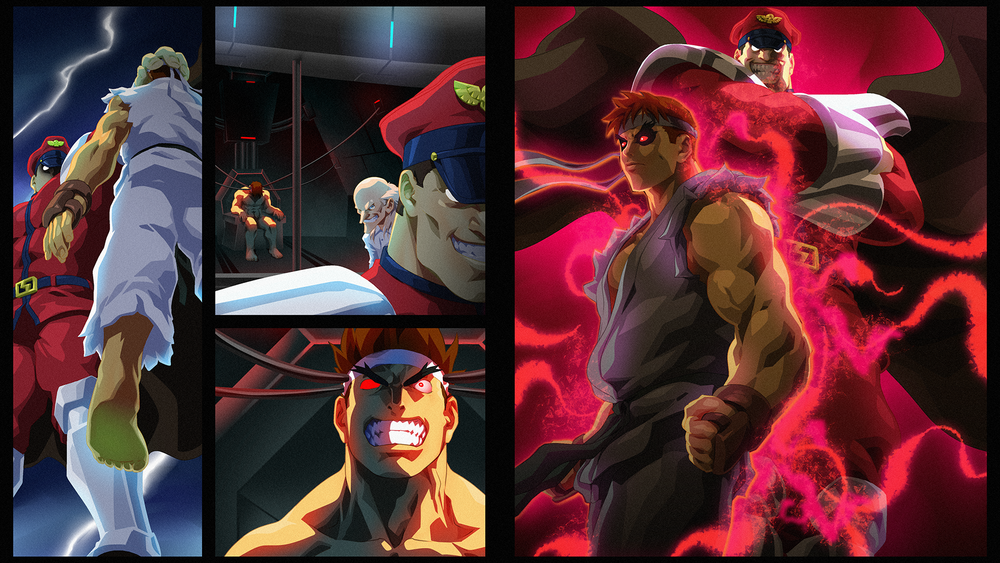 《少年街霸》时期,维加抓住了隆,企图获得他的力量(身体),但却激发出了杀意隆的诞生。