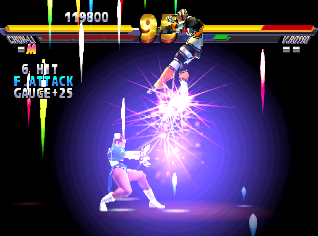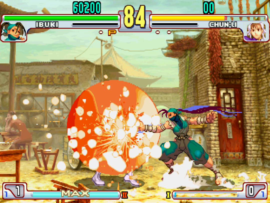 在《街头霸王EX2》中春丽的利用三个气打出来的气功掌,几乎可以攻击全屏。可以一次性带走对手一半多的血量。堪称是整个系列中威力最大,攻击范围最宽的波动。
