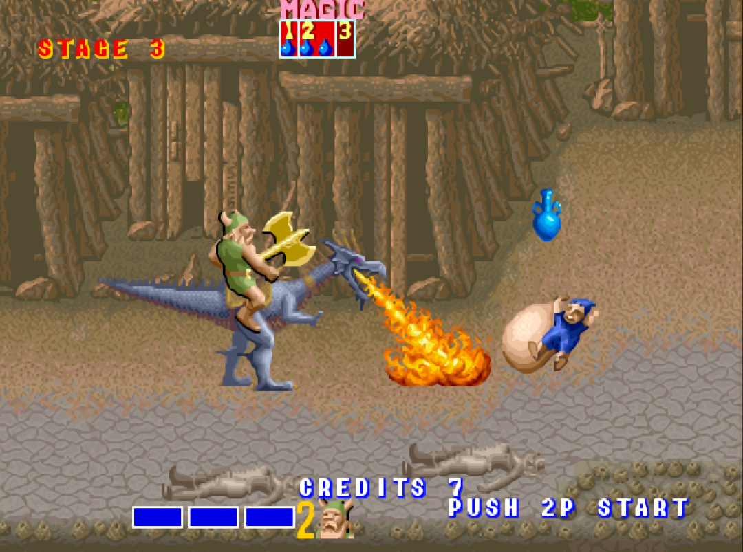 《战斧》还有一个格斗版本,其中超必杀技的释放仍然是魔法药水的累积。